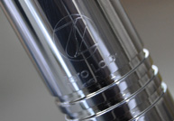 ダイヤモンドの刃を回転させて表面を削り文字や図形を表現します。高級感溢れる仕上がりを実現することが出来ます。